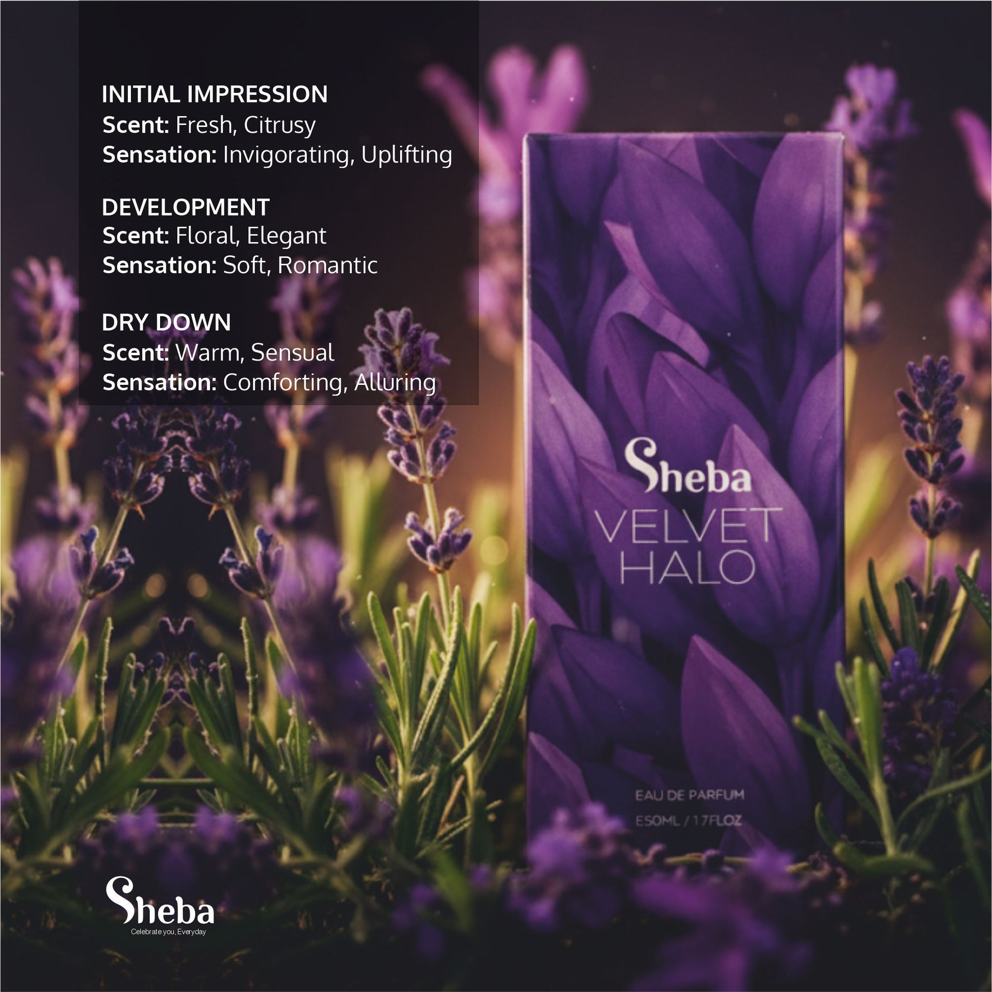 In the tranquil hush of a late afternoon, the Sheba Velvet Halo unspools its enchanting tale, a fragrance not merely worn, but lived. This is the scent of a woman who walks her own path, her footsteps leaving a trail of daring florals and whispers of freedom. It's an ode to the unapologetic, the bold and the beautiful, bottled in a jewel-like flask that holds the very essence of her untamed spirit. With every spritz, the perfume envelops her in an aura of confidence, a soft, velvet halo that reminds the world she is exactly who she's meant to be powerful, free, and utterly unforgettable.